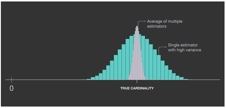 - 추정치의 변동성은 여전히 높다. 최대 를 기록하기 때문에 해시 값이 너무 많은 연속적인 0을 가진 항목 하나만 있으면 카디널리티에 대한 매우 부정확한(과대한) 추정치를 생성할 수 도 있다.