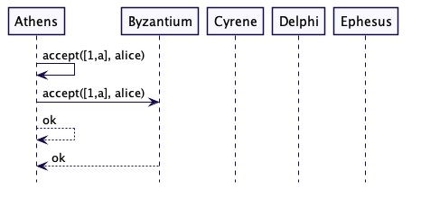 - alice는 아테네와 비잔티움에 의해 수락된다.