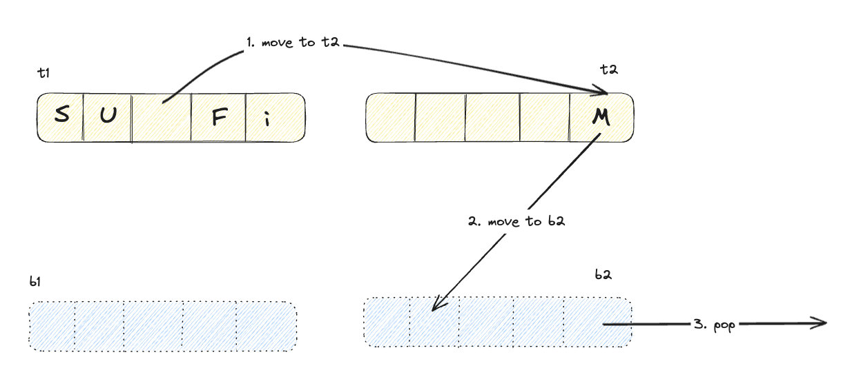 - 2번 이상 hit 한 데이터들이 밀려나와 frequency만 들고있는 b1 영역